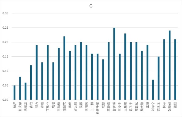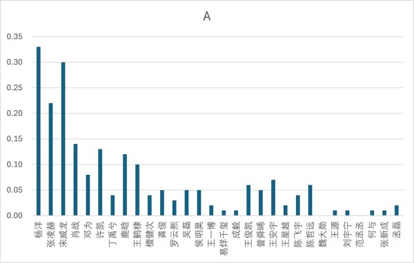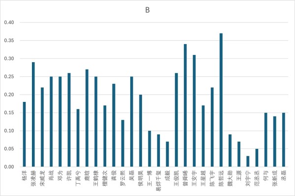 a级占比超过10%共7位。分别是:杨洋(33%),宋威龙(30%),张凌赫(22%),肖战(14%),许凯(13%),鹿晗(12%),王鹤棣(10%)