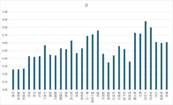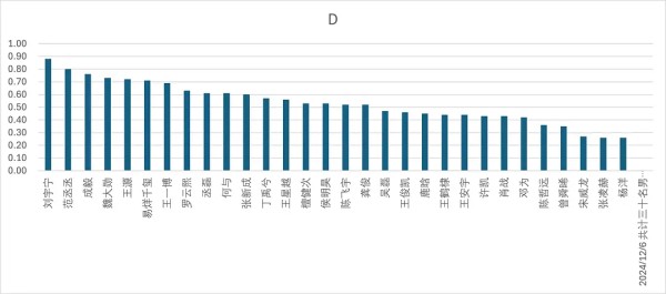 d级占比超过百分之60共计10人,分别为:刘宇宁(88%),范丞丞(80%),成毅(76%),魏大勋(73%),王源(72%),易烊千玺(71%),王一博(69%),罗云熙(63%),丞磊(61%),何与(61%)。