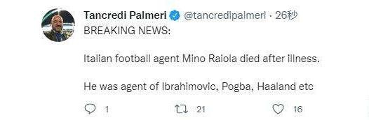 多家意大利媒体和意大利足球记者都在报道一则令世界足坛震惊的消息。意大利知名记者Tancredi Palmeri在社交媒体发文表示,世界足坛著名经纪人、意大利人拉伊奥拉因病突然去世,年仅54岁,死因尚未对外公布。可随之而来的消息可谓是一波三折......
