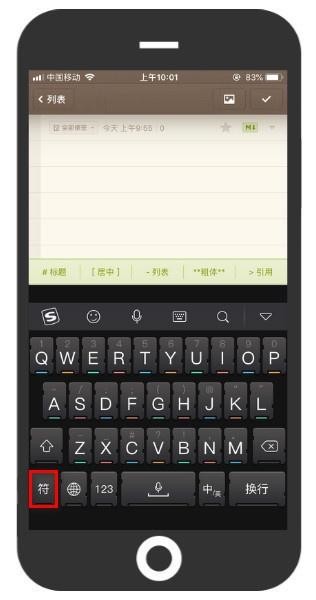 首先切换到搜狗输入法,点击键盘中左下角【符号】按键。