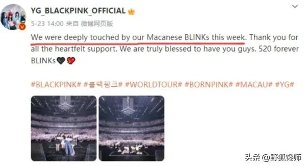 最近,韩国女团BLACKPINK因为一篇涉及辱华的文章而引发了争议,原因是,官方微博在感谢文中使用了“Macanese”这个词来称呼澳门的粉丝,被认为是有分裂和崇洋之意。虽然BLACKPINK的经纪公司已经发表了道歉声明,但这件事情依然引起了许多人的不满和谴责。对于这样的事件,不仅需要给予谴责,也需要深入思考为什么内娱明星还那么受人追捧。