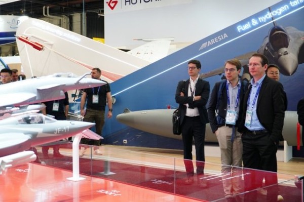 【环球时报-环球网报道 记者 樊巍】当地时间6月16日,被誉为“全球航空航天界奥林匹克”的第55届巴黎-布尔歇国际航空航天展览会(以下简称“巴黎航展”)在法国巴黎正式拉开帷幕。本届巴黎航展上,在近期创下辉煌空战战绩的歼-10CE战机成为了媒体关注的“顶流”。据《环球时报》记者了解,许多游客也慕名来到中国航空工业集团展台“打卡”,与展出的歼-10CE战机模型合影留念。对于歼-10CE战机在巴黎航展上掀起的“中国风”,中国航空工业集团巴黎航展代表团副团长朱谦6月16日向《环球时报》等媒体记者表示,歼-10CE等战机的参展是中国航空工业以开放、共赢之心参与全球航空产业链建设的例证。