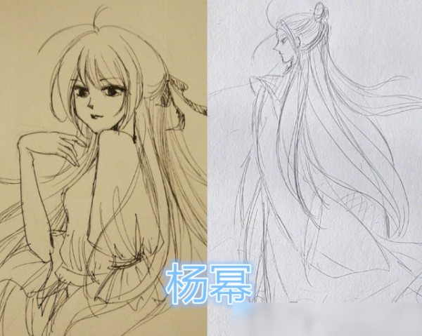 然后要说的是杨幂,很多人都知道她有非常多的热门剧集,而且平时在各种综艺节目里面也可以看到她的性格是很可爱的,关注她社交账号的人应该都知道,她也会在上面放上一些自己随手画的作品,看图中的这两个,就像是漫画中的人物一样。