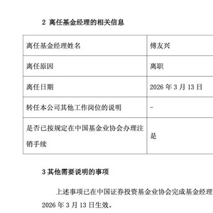 3月12日,广发基金发布公告称,傅友兴卸任广发稳健增长和广发睿阳三年定开两只在管产品,同时宣布离职。