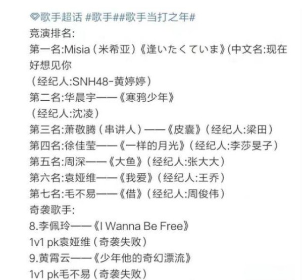 那么,究竟谁将荣登榜首呢?不少人推测可能是周深,毕竟在他参与的几人中,周深的实力堪称佼佼者。周深位列第五,尽管实力出色,仍未夺冠。然而,在网传的排名结果中,周深并未摘得桂冠,而是位列第五。这一排名结果同样令人意外,毕竟周深在乐坛上的实力不容小觑。日本歌手米西亚,她同样是一位实力非凡的歌手,她的实力被视为强劲竞争者。米西亚拥有独特的嗓音,擅长演绎高音部分,令人赞叹不已。从网络曝光的排名来看,她获得第一名的可能性相当大。