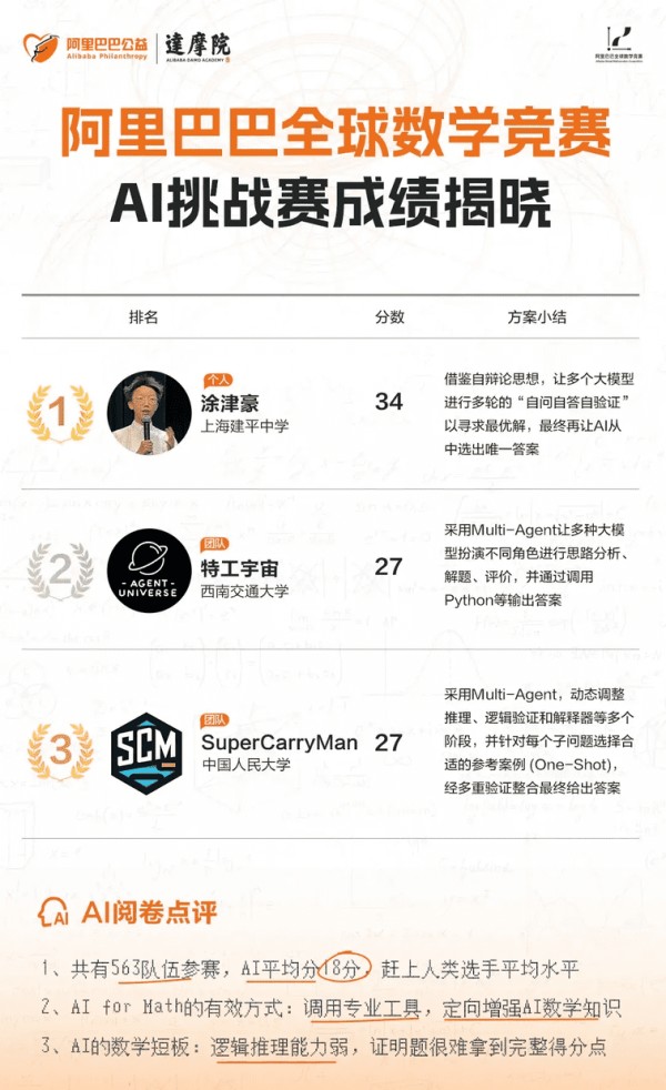 今年的阿里巴巴全球数学竞赛共有801人获奖,决赛将于6月22日举行。今年还首次举办了AI挑战赛,吸引了全球知名高校院所和企业队伍的参与。获奖者的奖金总额超过了400万。