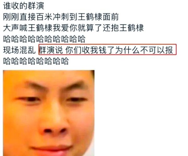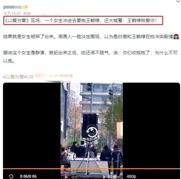 在场观众尚未来得及反应,安保人员和工作人员已迅速介入,将这位失控的群演控制住。据传,该女子在被控制时仍大喊:“王鹤棣,我爱你。”甚至在被制止后,她还试图辩解自己已付过费用。