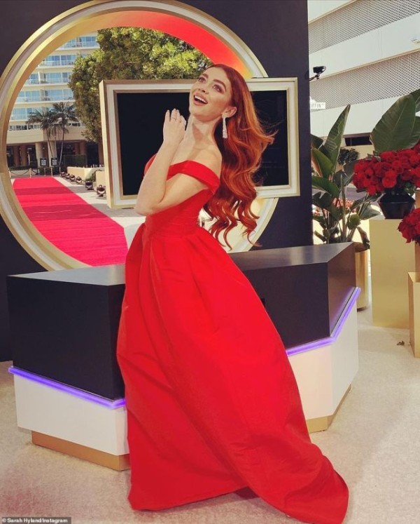 因出演《摩登家庭》而被大家知晓的女星莎拉·海兰德(Sarah Hyland),在个人社交媒体上发布了她到达颁奖礼现场的画面,穿着一条猩红色的裙子,“海莉”也如同公主般闪闪发光。
