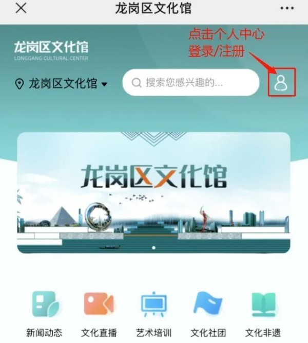 微信公众号进入“龙岗文化馆云”