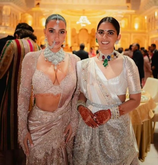 卡戴珊姐妹一身华贵亮相印度首富之子婚礼,真人秀女星风头足