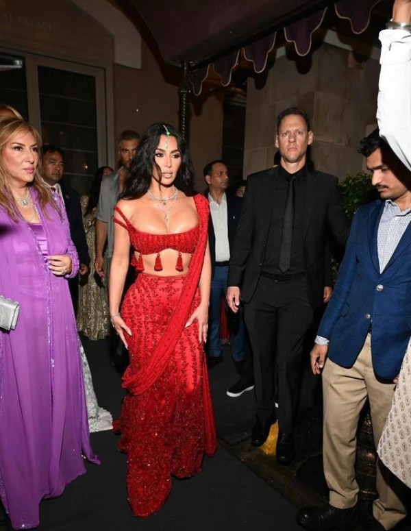 而其中最为瞩目的,无疑是卡戴珊的惊艳亮相。她身着一袭绚丽夺目的印度传统服饰Lehenga,仿佛从古老传说中走出的玉兔精,既神秘又迷人。那套Lorraine Schwartz祖母绿宝石的点缀,更是让她犹如一枚闪耀夺目的明珠,全场无人能及。就连平素对她颇有微词的网友,也不得不为她的美貌折服,纷纷感叹"是真的好看!"