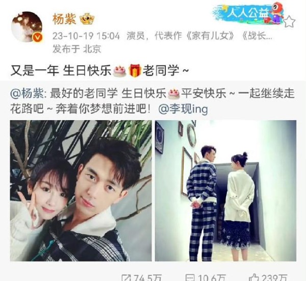 李现连续七年为杨紫庆生,网友喊...@橙星娱乐圈的动态
