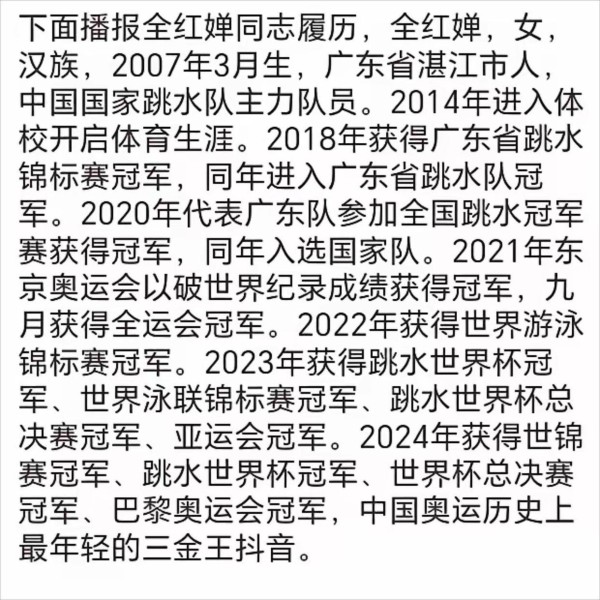 全红婵个人档案:从湛江少女到奥运冠军,她的成长细节首次系统梳理