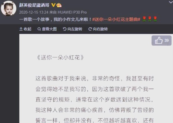 赵英俊用音乐与大众建立了深刻的情感连接,他的离世引起了深烈的哀悼,尤其是他的星友与粉丝。以歌曲《送你一朵小红花》为媒介,赵英俊的情感与精神在作品中永存。