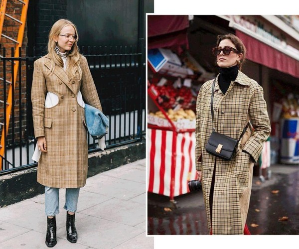 个子较小或者是骨架小的女生更适合选择长度微微超过膝盖的类型,而高挑并且肩膀较宽的女生可以选择及脚踝的格纹大衣。