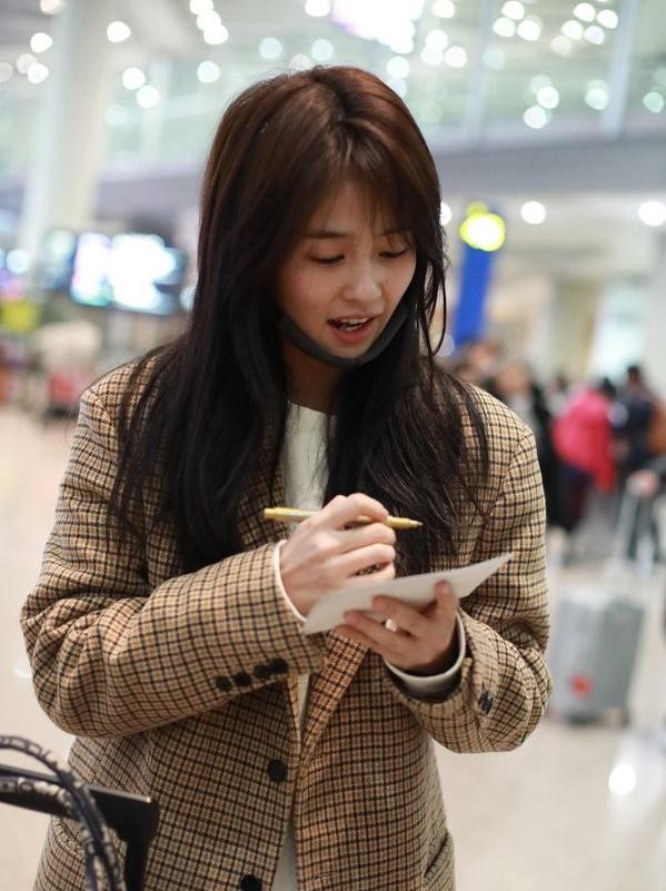 张天爱挺会赶时髦,大冷天走机场坚持穿短裙,“豆腐腿”赚饱眼球