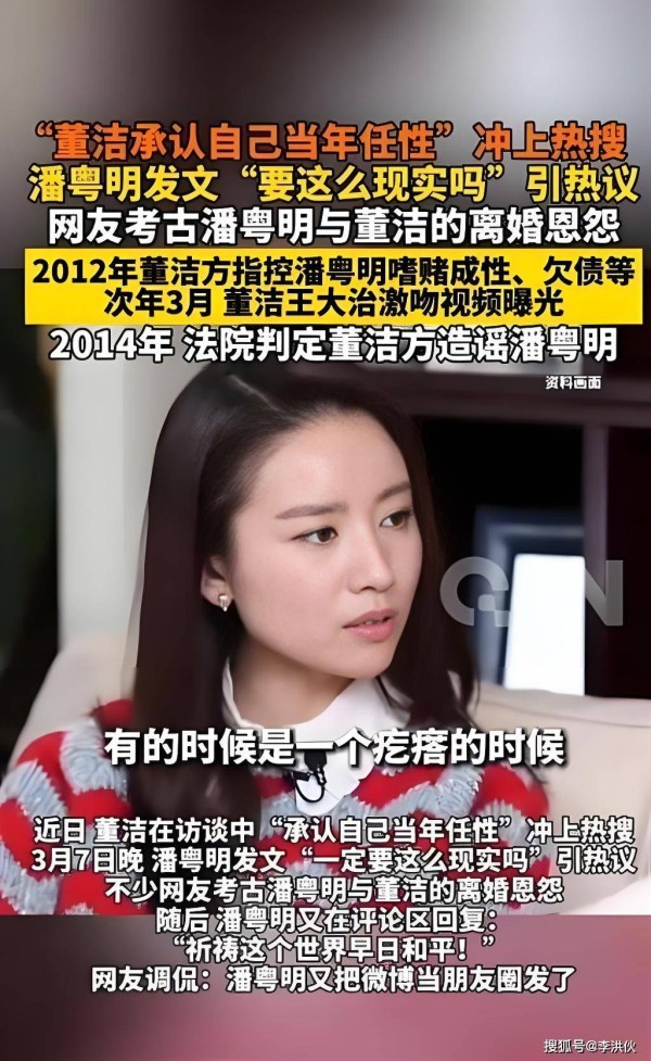 成年人的体面千疮百孔,董洁承认当年太任性,潘粤明的言论引猜测