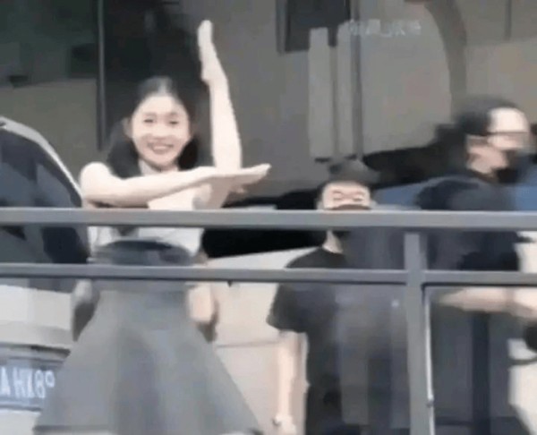 有一次,刘浩存下班时,有粉丝对着她模仿举手表情包。