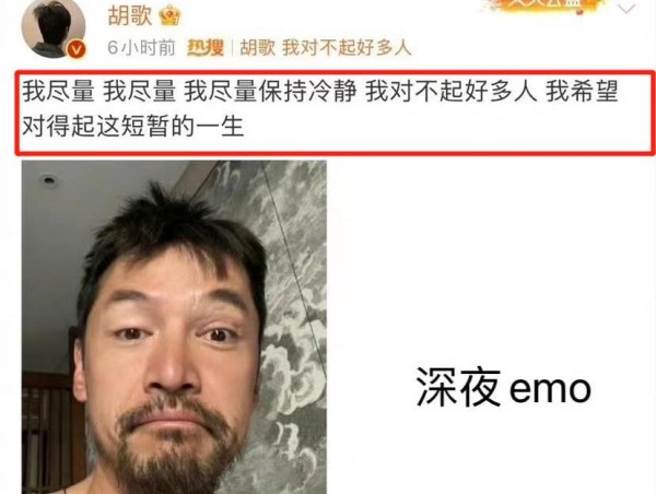 没人想到,短短几小时后,他又甩出一张胡子拉碴的自拍:“我尽量保持冷静,我对不起好多人,我希望对得起这短暂的一生。” 32个字,像三颗钉子,钉在每个人的心口。