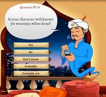 它的游戏是这样的:参与游戏者心中想一个人物,最好是公众人物,比如说政治家、娱乐明星或者著名卡通等。Akinator 会问一系列的问题,来猜你心中想的人物。一般十几个问题之后,它会说出它的答案,看是否和你的相符。据玩过的人讲,这个游戏准确度相当高,给人以惊奇。所以很多玩过的人乐此不彼。