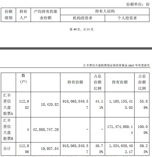 在基金经理丘栋荣2018年4月28日前,2017年年报显示,机构投资持有的份额为918,065,840.57份,占比44.11%;