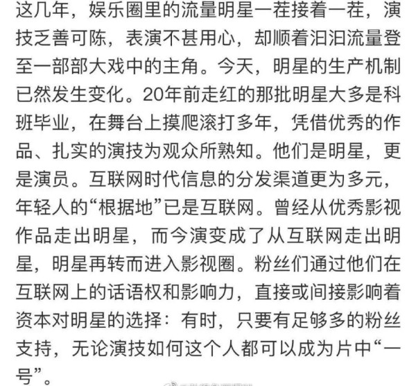 他的影响力同样很大,享受着影响力带来的权利,却没有履行相应的义务:引导积极向上的方向。