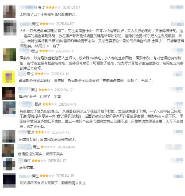 然而该剧也存在一些问题让部分网友感到失望,网友表示“太狗血了以至于失去生活和故事魅力”、“前面好好的,后面完全崩成糊闹剧了”、“矫情扭捏的写实,反而不真实”、“前半部分是现实题材,很感触,后半部分画风突变成了荒诞黑色喜剧,变味了,无聊了。”