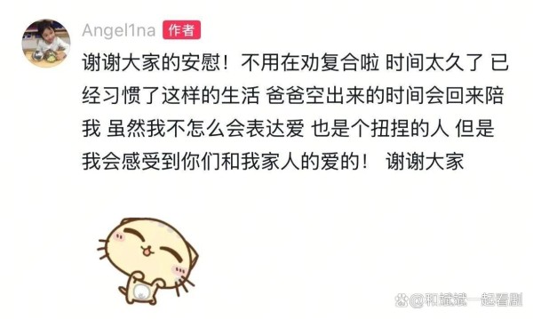 正如她在评论区写的:“虽然我不太会表达爱,但能感受到家人的爱。”或许对星二代而言,比“完整家庭”更珍贵的,是终于不用在父母的花边新闻里,独自消化那些名为“想念”的叹息。