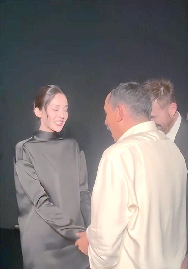 古力娜扎与一位外国总监进行了长时间的交流,过程中对方一直拉着她的手,显得十分自然。在场的氛围也相当融洽,娜扎用英文回答对方的问题显得游刃有余。