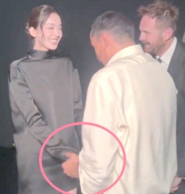 为了摆脱尴尬,娜扎巧妙地建议对方转向拍摄合照,从而为自己找了一个台阶下。然而,在合照时,那位总监却又将手搭在了娜扎的腰上,两人的身体靠得非常近。