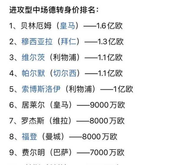 刚才在转播室,我顺手刷新了一下德转(Transfermarkt)刚刚公布的进攻型中场Top 10身价榜,刚喝进去的一口黑咖啡差点直接喷在战术板上。