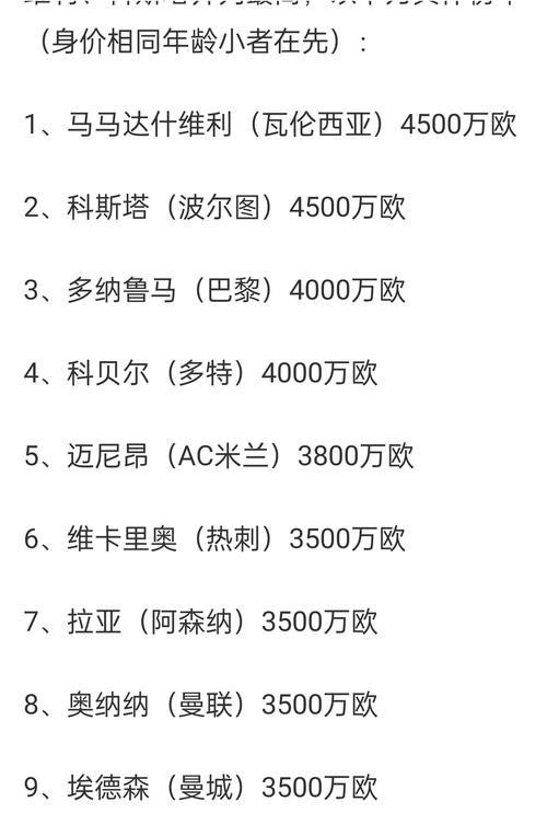 德转的这份榜单,简直是把现代足球估值体系的荒谬感,赤裸裸地拍在了所有球迷的脸上。