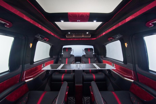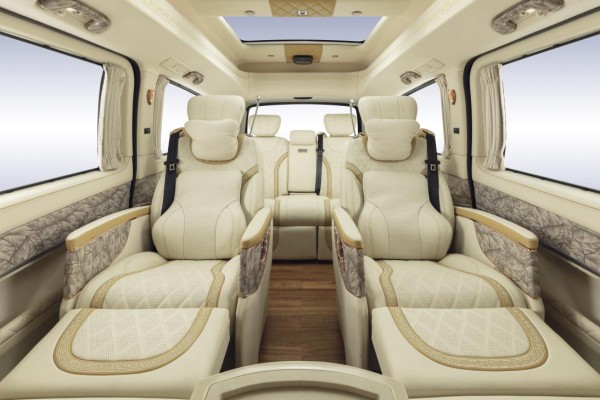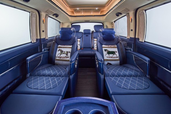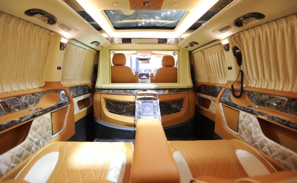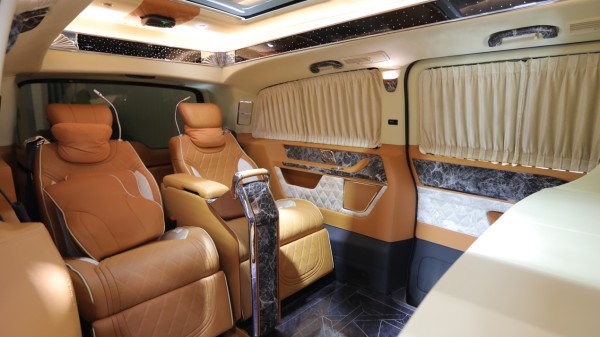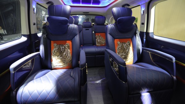 金威虎在奔驰V260L原车基础强化了“陆上王者”的风范,将不藏锋芒的王者之气与陆地头等舱的舒适感完美演绎。