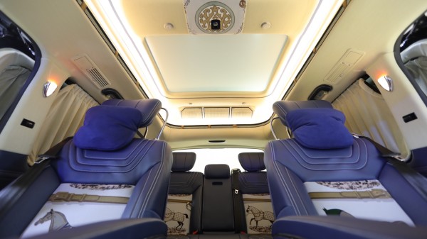 此款车型是上喆2019推出的限量款七座商务车,爱马仕布料精致点缀,蓝色超纤皮座椅豪华包裹,让法蓝丝黛系列在色彩过渡平稳,内饰上自然流畅,行云流水纹麂皮包覆与爱马仕天鹅绒侧檐装点交相呼应,相得益彰。搭配脚下质感厚重的黑色橡木地板,低调之中尽显奢华。
