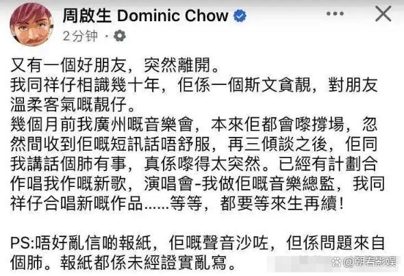 2025年3月29日,一个令无数人扼腕叹息的消息传遍了整个华语乐坛——香港资深男歌手李国祥因病不幸离世,享年仅60岁。这位曾以《余情未了》等经典歌曲感动无数听众的“金嗓歌王”,在生命的最后一刻依然坚守着对音乐的热爱与执着,直到最后也没有向外界透露自己的病情,以免让粉丝们担忧。