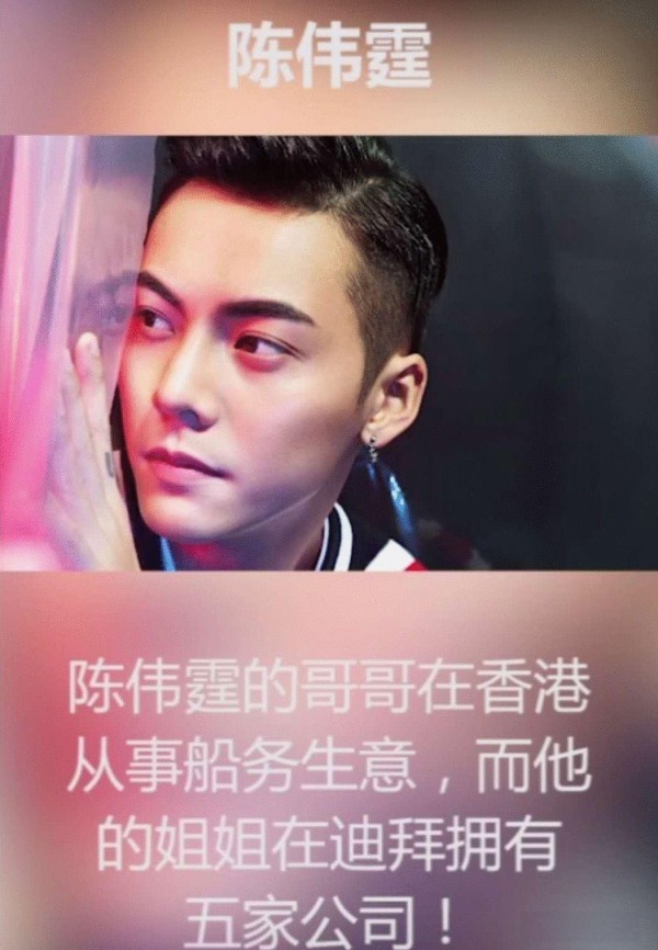 “陈伟霆”背后的家族实力:他的哥哥在香港经营船务生意,而他的姐姐则在迪拜拥有五家公司的庞大商业帝国。