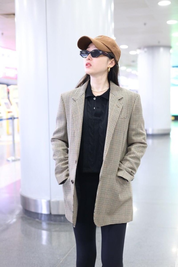 刘亦菲启程巴黎LV大秀,西装外套搭配阔腿牛仔裤,随性潇洒刘亦菲机场私服真时髦!卡其色外套+牛仔衬衫+阔腿裤,减龄又高级