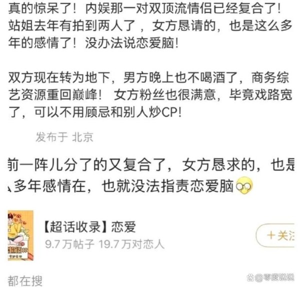 追八卦的朋友们,这两天是不是被一张“顶流情侣复合”的爆料图刷屏?微博简直炸开锅。
