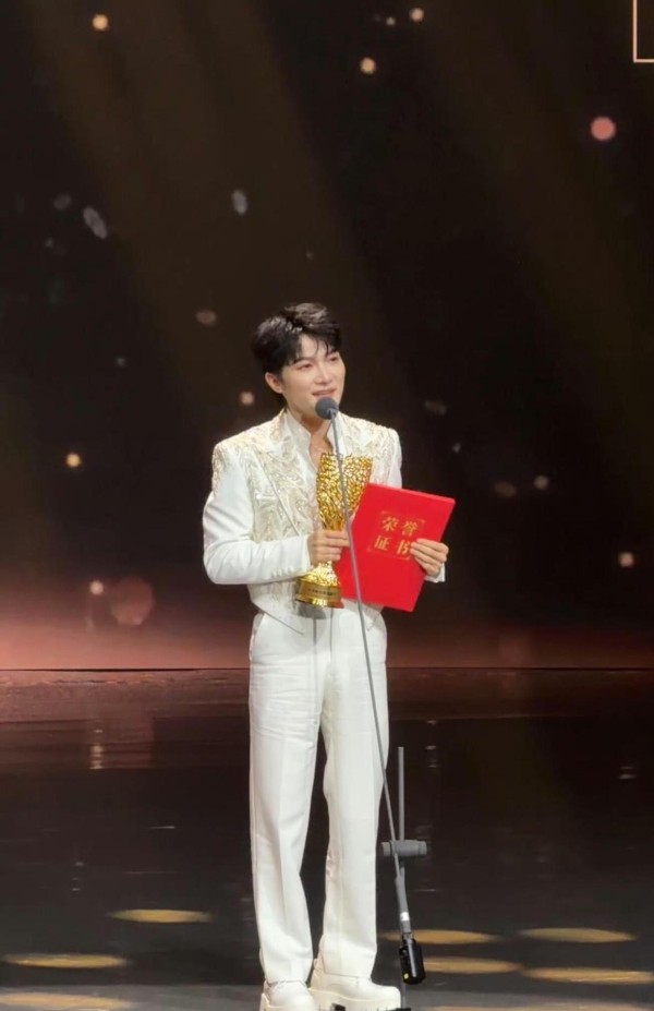 奖杯挺重的,他拿在手里,对着话筒说:“特别幸运能从喜欢听歌的人变成歌手,从喜欢看电视剧的观众,到和台前幕后的老师们一起编织一个个瑰丽的梦。 ”这话说得,一点明星架子都没有。 他还说希望自己的歌声不仅能陪伴电视剧里的角色找到自己,也能陪伴每一个听众找到自己。 台下安静了几秒,然后掌声就响起来了。 这种感言现在真不多见了,不炫技,不卖惨,就是朴朴素素地讲自己多幸运,多感恩。