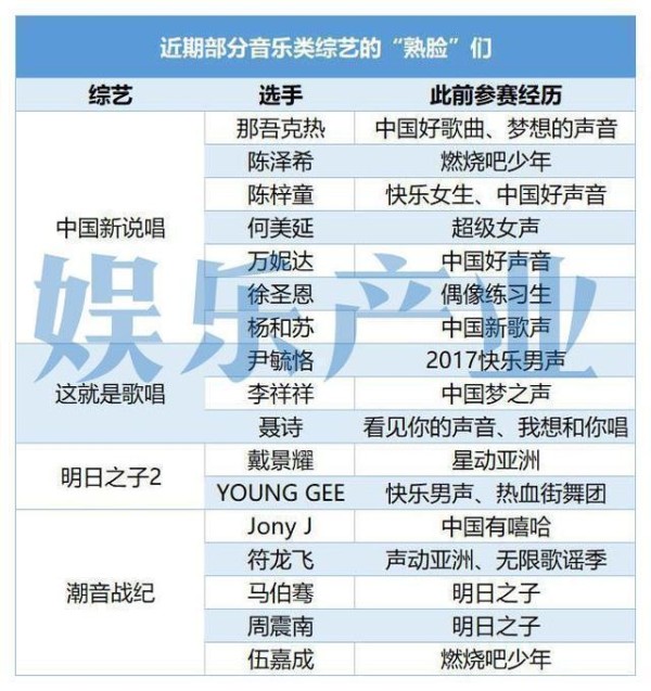 娱sir有种感觉,在经历了选手荒、导师荒之后,很快就会迎来(其实已经迎来)行业人才荒。像龙丹妮与马昊的哇唧唧哇,几乎承包了腾讯视频的所有音乐选秀类综艺,从《明日之子》、《创造101》到《潮音战纪》。作为此前在天娱做出超女快男以及燃少的团队,几档节目中有熟悉的选手或者类似的模式,其实很正常。