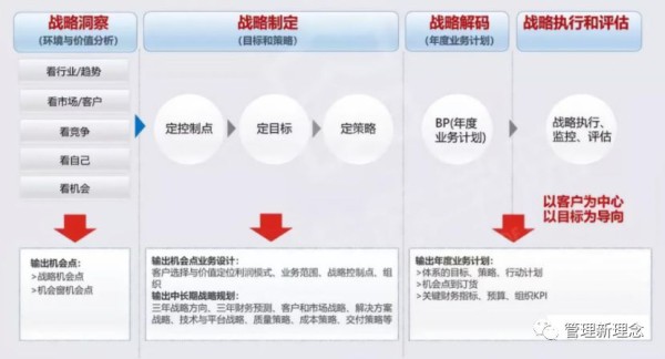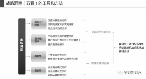 第一个部分叫战略洞察,通过“五看”的方式(看行业趋势、看市场客户、看竞争、看自己、看机会)最后输出战略机会点;