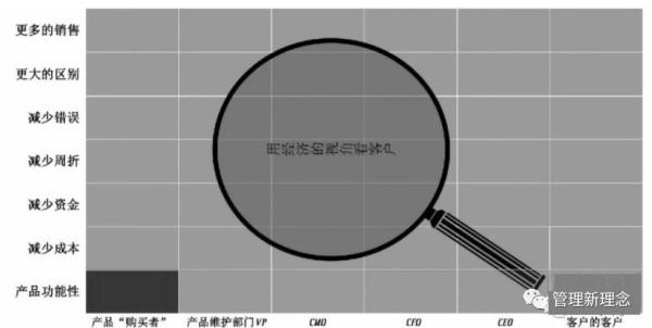 华为在北非开展无线设备业务的时候,当时不是想卖出去,而是想把产品送给客户,但是都找不到客户在哪里。华为的销售把客户的所有采购行为打开,有CEO、CPO、CFO等等,没有一个人愿意理会华为的销售,只有一个运维部门愿意。