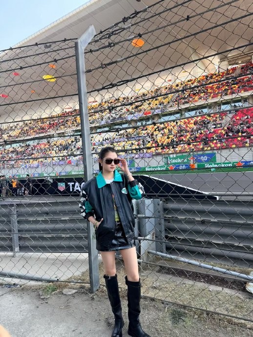 受轮胎品牌倍耐力官方邀请,关晓彤以特邀嘉宾身份亮相F1中国大奖赛。她身着黑色机车皮衣,搭配过膝长筒靴与铆钉皮裙,高马尾束起墨镜加持,172cm的身高优势与利落剪裁凸显出肩腿比例的视觉冲击力。现场生图中,其冷白皮与骨相优越的侧脸被观众频频抓拍,长腿在赛道边形成“移动景点”,观众争相求合影。偶遇者称其亲和力满分,兴奋挥旗时眼神灵动,被粉丝调侃“彤姐变景点”。