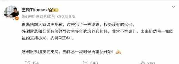 小米明星高管王腾突然离职,九年辉煌一夜归零!