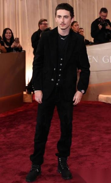 对比之下,今年真正的男主角,是甜茶没跑了,《至尊马蒂》让他一战封神,把莱昂纳多按在地上摩擦,都不是新闻了,关键是甜茶这次收拾利索了,把头发和胡须剃干净,人显得清爽许多,就是衣服依然随便,松弛感拉满,这操作你细品,美式影帝审美变天了?