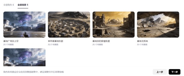 这一环节完成后系统会生成完整的故事蓝图,不仅覆盖剧本里从主角到路人甲的所有出场角色,还会完成对应角色的形象设计、出场场次标注,信息一应俱全。同时,系统还会自动完成剧本的集数、场次划分,创作者想要生成哪一场次的分镜,都能清晰直观地找到对应入口。