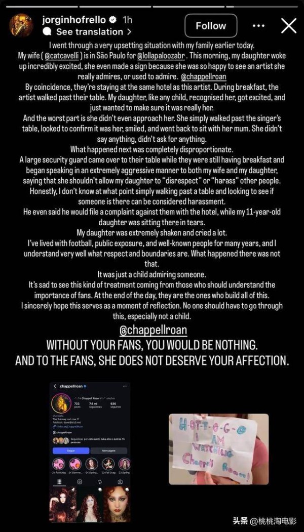 他直言自己常年生活在聚光灯下,深知公众人物的边界感,但查普尔团队的做法绝不是在维护边界,而是对一名普通女孩的粗暴霸凌。
