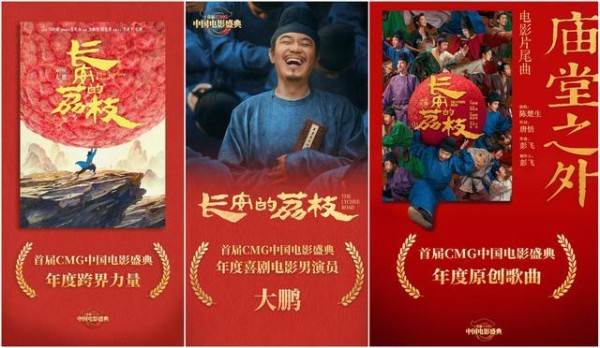 长影出品新作《澎湖海战》亮相CMG中国电影盛典,联合出品影片《长安的荔枝》获奖《长安的荔枝》获微博电影之夜年度瞩目影片 大鹏携“荔枝男团”给“荔”亮相