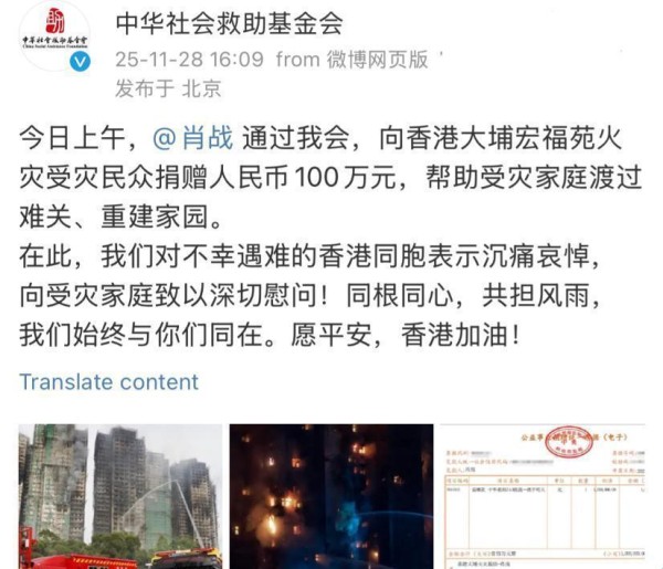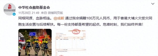 11月28日凌晨,香港大埔宏福苑的火光还未熄灭,肖战的转账记录已经出现在中华社会救助基金会的后台。100万元,备注栏里只有简单几个字:受灾家庭安置。没有公关稿,没有通稿,甚至连工作室声明都慢了半拍。