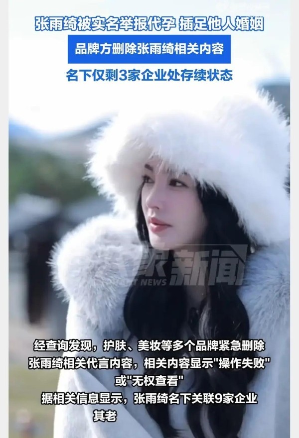 张雨绮代言突被撤下,品牌方动作迅速,网友都在追问真相